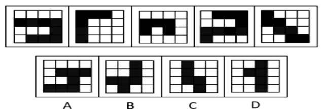 【答案】C。中公中公解析:黑块数量不一致,元素组成相似,优先考虑样式规律,但无规律。继续观察发现,题干中所有黑块全部都能一笔画成,只有C项符合。